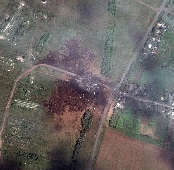 这张7月20日公布的卫星图片显示马航MH17航班客机坠毁地点。