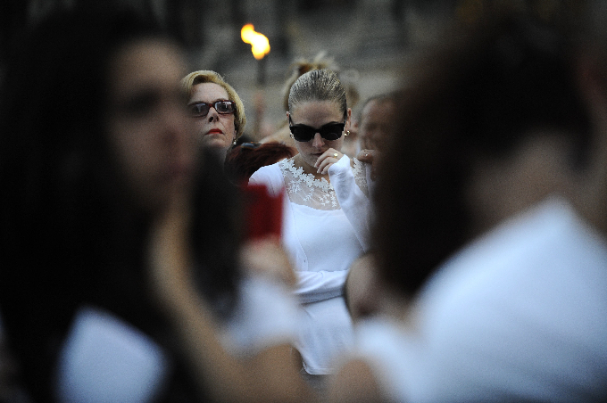 7月23日,在荷兰首都阿姆斯特丹,人们参加悼念马航MH17航班遇难者的活动。