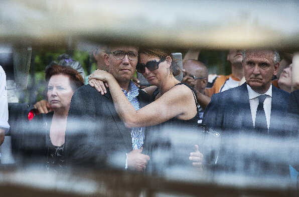 7月23日,马航MH17航班遇难者亲属看着抵达荷兰希尔弗瑟姆的灵车车队。