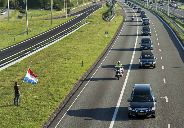 大约有200具马航坠机遇难者遗体被运抵荷兰,国王威廉·亚历山大 (Willem-Alexander)携王后马克西玛、首相马克·吕特(Mark Rutte)与许多悲伤的亲属,一同在艾恩德霍芬机场迎接。当遇难者遗体被从运输机上抬下时,国王夫妇手握在一起,难抑悲伤之情。王后眼中甚至数次流下热泪。荷兰政府已经宣布7月23日为全国哀悼日。