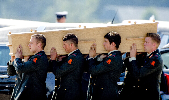 当运送遇难者遗体的车队被送往Korporaal van Oudheusden兵营安置、并确认身份前,荷兰政府举行了一分钟默哀仪式。吕特说:“一旦遇难者身份被确认,将会首先通知他们的亲属。但这一过程可能需要数周乃至数月时间。”