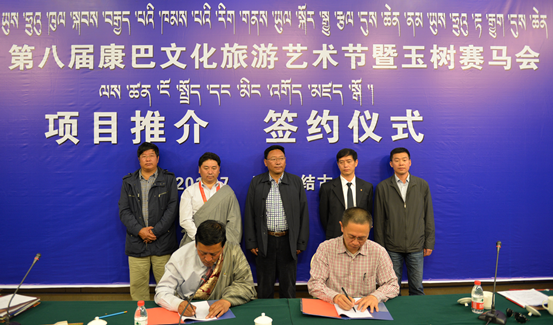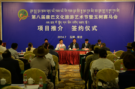 推介会上,四川甘孜、云南迪庆、西藏昌都的商务代表分别推介了当地招商引资重点项目。玉树州农牧局与上海华王集团签署了《农畜产品开发加工项目协议书》、囊谦县政府与北京丝蒂卡餐饮有限公司签署了《黑啤酒生产加工协议书》、玉树州政府与雷鸟公司签署了《液化天然气(LNG)项目投资协议书》。