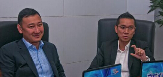 新加坡旅游局大中华区首席代表兼署长周振兴(左)和新加坡旅游局展览与会议署署长潘政志(右)接受媒体采访。新华网 闫婷 摄
