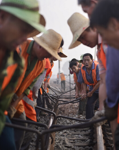 7月29日,在江西省乐平市皖赣铁路甘棠站,更换枕木前最后一趟列车驶过