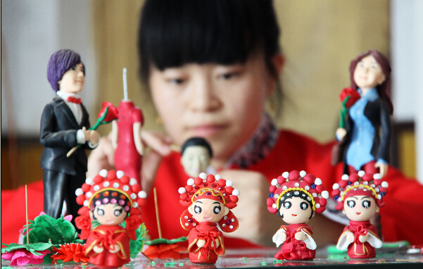 七夕节前夕,山西省万荣县一面塑馆推出“七夕情人节送她一个别样的面塑礼物”促销活动。这种“七夕面塑”以蒸熟的面粉、甘油为主要原料,经捏、搓、揉、点、切、刻等手法制作而成,色泽鲜艳、栩栩如生。