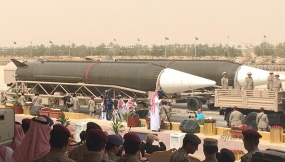 据加拿大《汉和防务评论》7月30日报道,沙特在4月间的阅兵式上,首次公开了1988年从中国获得的东风-3型中程弹道导弹,阅兵式上,一共有2枚东风-3亮相。外媒分析了2011年拍摄的沙特Al Watah 东风-3导弹基地卫星图片,发现依然在使用,其中有4个发射场坪、6个地下山洞出口,整个部署体系也是中国式的,即在洞内实施灌注燃料,然后拖出来发射。该基地距离利雅得、德黑兰、特拉维夫的距离分别为200、1400、1200公里,后两国都在东风-3的射程之内。东风-3射程1800公里,配备一枚1.5吨的高爆弹头。