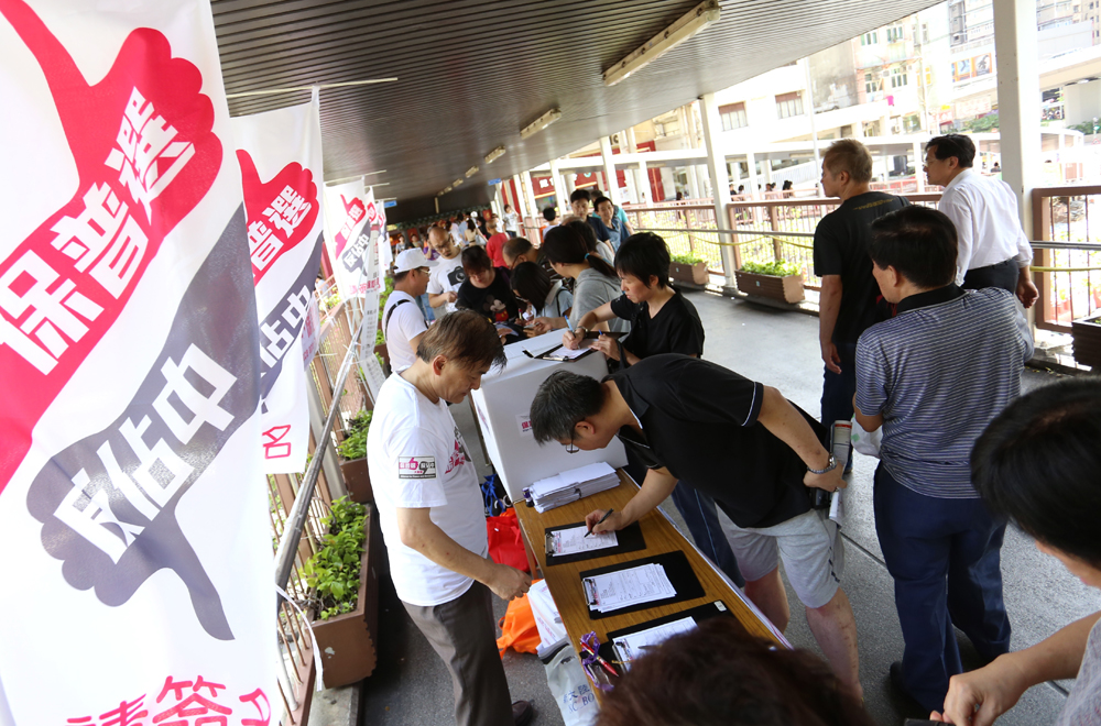 另外,民建聯沙田支部及工聯會亦分別於大圍鐵路站A出口外及上水新都廣場對出設立街站,兩址位處人流交匯處,義工們均穿上工聯會上衣方便市民識別。記者發現,簽名行動支持者包括香港市民和內地來港即日往返的旅客,不少即日往返的深圳居民亦參與行動,親身簽名反「佔中」。