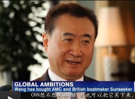 CNN:至今王健林已经完成了两项海外并购。2012年,万达以26亿美元收购了美国电影院线AMC。去年,他斥资5亿美元收购了英国圣汐游艇公司。圣汐游艇曾出现在007电影中。对王健林来说,詹姆士·邦德开过的游艇一定是个不错的选择。