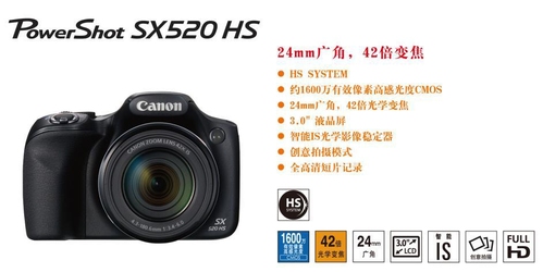 PowerShot SX520 HS的輕巧機身(加上電池349g)搭配24mm超廣角42倍光學變焦鏡頭,內置光學影像穩定器。加上鏡頭也大概只有一瓶礦泉水的重量,但具備一般攝影者所需功能:強化遠攝構圖輔助功能,方便捕捉遠距離景物;強化自動變焦構圖功能,輕松拍攝理想人像相片;0cm 超微距拍攝;支援光圈先決(Av)、快門先決(Tv)及手動曝光(M)拍攝模式。另外,支援低光拍攝模式,最高支援ISO 6400。文:Diana