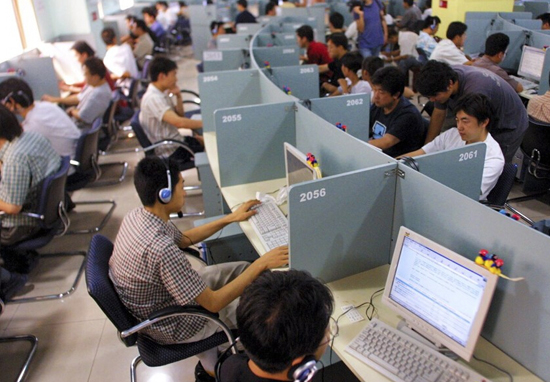 真正导致网吧没落的,是个人电脑的普及,和智能手机、平板电脑等移动设备的冲击。图为2006年,西藏拉萨一网吧内。