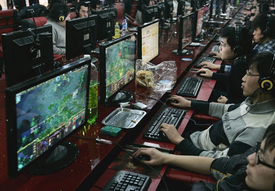 在山西太原670家在册登记的网吧中,有80多家宣布停业,停业率超过10%。2009年12月24日,山西太原某网吧内上网的青年。