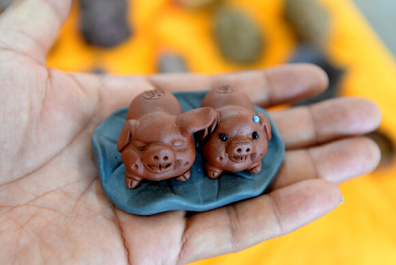在8月7日举行的紫砂艺术节上,江苏宜兴能工巧匠用紫砂泥仿制烧成的小猪、小狗、花生、栗子、黑瓜子、白瓜子等仿真紫砂陶造型逼真,栩栩如生,受到济南观众的追捧。