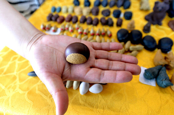 8月7日,在济南紫砂艺术节上,一位观众手捧用紫砂泥烧制成的栗子爱不释手。