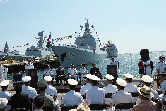 编队在从夏威夷到圣迭戈的航渡中,与纽伯恩少将率领的美国海军舰艇编队结伴航行,进行了包括《海上意外遇险规则》(简称“CUES”)等内容的海上演练,双方配合默契,成效显着。这充分表明了两国海军关系与日俱增的成熟和互信,更是具体落实两国海军高层领导就加强两国海军务实交流,推进互信合作等一系列重要共识的具体实践。