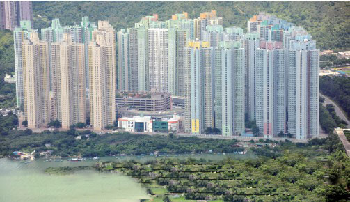 陳勇指東涌沿海用地可再建公共房屋,圖為人口約4萬的東涌公屋逸東朥。