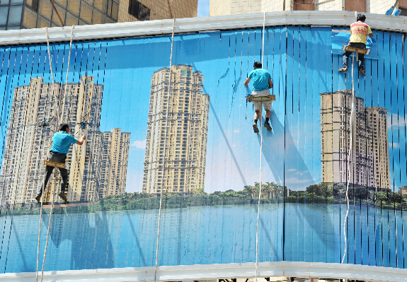 8月20日,厦门市区工人正在整理开发商刚投放的地产广告。中国国家统计局日前发布的7月份70个大中城市新建商品住宅价格变动情况显示,与上月相比,70个城市中价格下降的城市增加至64个,就连北上广深四大一线城市今年来也首度加入了下降的行列,而持平的有4个,仅剩下2个城市还在上涨,其中就包括厦门。数据显示,7月份厦门新建商品住宅价格环比上涨0.2%,同比上涨7.2%,双双位居全国第一。根据中国指数研究院发布的7月百城房价指数,经济总量位居全国第53位的厦门房价为20428元/平方米,比身为一线城市的广州还高出2260元。