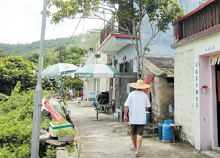 今年60多歲的何樹來說,小時村中住的人較多,但因地方偏遠,「搵食」不方便,年輕一輩都搬出市區生活。村民從前靠小學(已結束多年,現為村公所)旁的井水供給生活所需,大約20、30年前,政府修建了溪水供應系統,將山水導入小水塘,再流入水缸,通過水喉流入民居。何指當局有定時維修,但有時不夠水食,「天旱時根本好少水流入水缸,人多時又唔夠用,假期好多外地人入嚟玩嘅。」