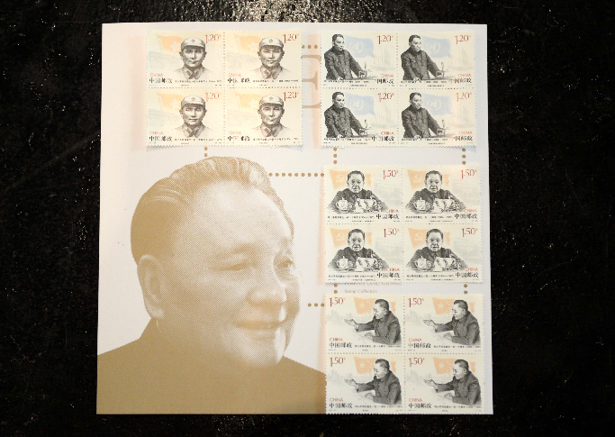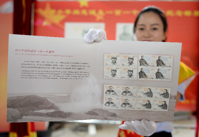 8月22日拍摄的全套《邓小平同志诞生一百一十周年》纪念邮票。