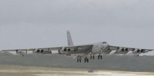 一架美国空军B-52H轰炸机从安德森空军基地起飞
