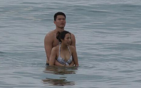 网友曝光朱八与小三三亚戏水。