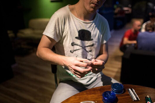 当地时间2014年8月22日,西班牙巴塞罗那,大麻俱乐部的员工向会员介绍不同类型的大麻。