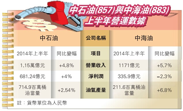 中石油今年上半年業績符合市場預期,期內收入增長4.8%至1.15萬億元(人民幣,下同),純利增長4%至681億。其中煉油業務經營利潤為43.55億元,實現扭虧為盈,化工業務則同比減虧3億元;油氣產量則增長2.5%,汪東進稱,今年將投資約70億元用於頁岩氣開發,今年產量可達1億立方米,而明年頁岩氣產量將由原先預計的15億立方米增至20億立方米,他相信,未來在頁岩氣開發上會好於中石化。