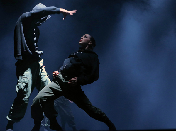 8月28日,意大利巴勒莫舞团演员在德国杜塞尔多夫举行的国际舞蹈博览会上表演舞蹈《安全出口》。