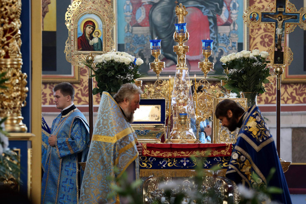 当地时间8月28日,哈萨克斯坦首都阿斯塔纳的一处教堂内,神职人员举行宗教活动。当天为东正教的圣母升天节。根据《圣经》记载,这天圣母玛利亚离开人世。该节日为东正教12大主要节日之一。哈萨克斯坦为世俗国家,宗教信仰自由,人口大部分信仰伊斯兰教,另有部分人信仰基督教等其他宗教。在其首都阿斯塔纳有天主教、东正教、犹太教等其他宗教教堂。