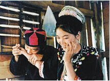 「咬手」是海南苗族男女青年表達愛情的一種獨特方式。每逢節假日,特別是三月初三,青年男女相會時,唱起美妙的歌曲,抒發自己的情趣和心願,尋求自己的意中人。隨后,小夥子拿起弓箭、漁叉到河溪里抓魚,姑娘們在溪邊烤竹筒飯和煮魚,直到太陽落山才散去。