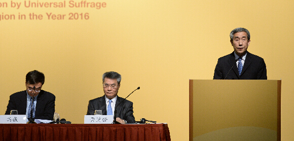 他表示,政改是困擾香港近30年的重大政治問題,「就當前來說,正如常委會組成人員在審議行政長官報告和決定(草案)時所指出的,這個問題本質上不是要不要普選、要不要民主的問題,而是香港特別行政區的管治權之爭,是香港長期以來存在的各種政治問題的集中反映。」