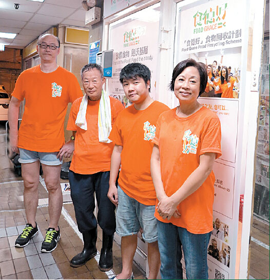 當時正值市民買缩的繁忙時間,他們熟練地與街市職員打招呼後,並留意舖位附近有否零碎剩食放在地上的膠籃內。兼職工作一年半的雲姐表示,已與街市職員建立共識,回收工作以不阻礙攤檔生意為大原則,並記錄每項回收食物的價錢及重量,方便其後統計。