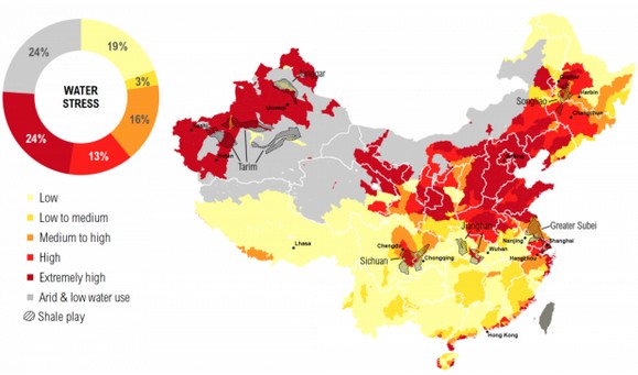 WRI表示,中国并不是唯一受此困扰的国家,储量大的页岩油气资源有很多都位于水资源匮乏地区。不幸的是,中国是受此困扰最严重的国家之一。