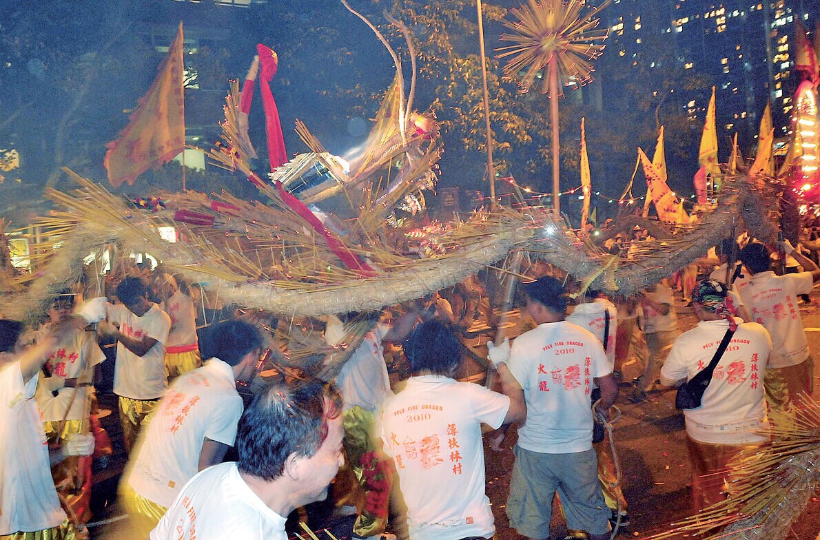 除了大坑外,港島南區薄扶林村在中秋節當晚同樣會有火龍巡游表演。薄扶林村的舞火龍也是個悠久的傳統節慶習俗,歷史超過100年。過去舞火龍的目的是驅趕疾病、祈求風調雨順,時至今日已成為維繫村民感情的活動。
