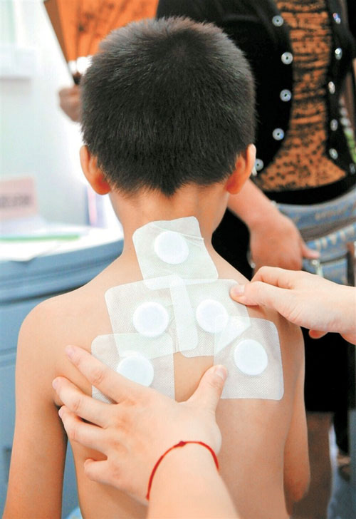 用一定的藥物或者是日常生活用品把它跟人的皮膚接觸,然后起到一定的作用,這叫貼敷或者外敷。像「三九」和「三伏天」,我們有「三伏貼」、「三九貼」,這個就是通過特定的穴位把藥物敷上之后,然后讓藥進入體內,通過皮膚給藥;而拔罐和刮痧也可以治療一些小孩的病。