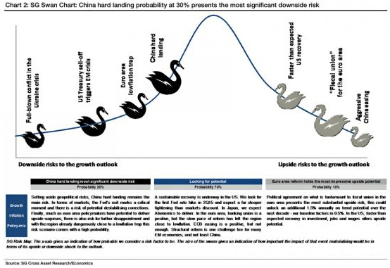 法国兴业银行(10.46, -0.03, -0.29%)着名的“黑天鹅报告”又出炉了,报告认为如今全球经济最大的下行风险是中国经济,并认为中国经济硬着陆的几率有20%。