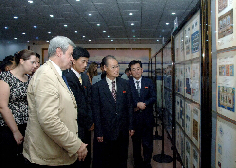 这张朝中社9月9日提供的照片显示,由朝鲜邮票爱好者同盟和俄罗斯民族集邮学院共同主办的集邮展在朝鲜民主主义人民共和国成立66周年之际举行。