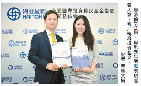 他又指,由於去年港股表现差强人意,客户已减少对港股的投资,转而青睐回报稳定、利息高的投资基金。例如债券平均有4厘息率,回报高过一般股票,加上风险较低,所以成为不少投资移民人士的理想选择。他补充,目前暂未见到投资者因「沪港通」公告发布而改变投资取向。 海通国际昨推出投资移民基金指数系列,作为「资本投资者入境计划」获许投资资产类别内合资格基金价格的指标及参考,以反映基金的价格及走势。该系列包括股票基金、债券基金及交易所买卖基金(ETF)三个指数,成分股数目分别为45个、5个及14个,基数点为100点,将於每月2日公布指数。最新数据显示,公司旗下投资移民股票基金指数受近来港股向好带动,截至8月底,三个月上升8.26%,指数於8月高位整固,全月微跌0.01%至328.07点,而债券基金指数及ETF指数分别报130.6点及287.82点。