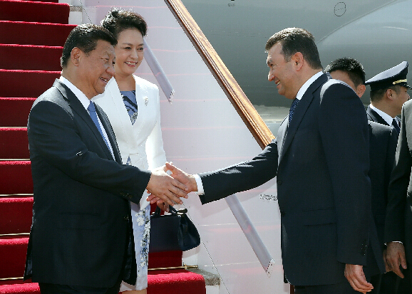 9月11日,国家主席习近平抵达杜尚别,应塔吉克斯坦总统拉赫蒙邀请,出席上海合作组织成员国元首理事会第十四次会议并对塔吉克斯坦进行国事访问。习近平和夫人彭丽媛在机场受到塔吉克斯坦总理拉苏尔佐达等热情迎接。