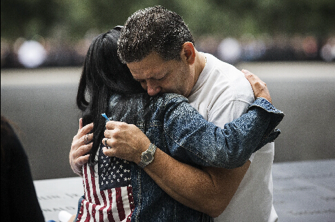 “9·11”事件遇难者亲属在美国纽约世贸中心遗址拥抱