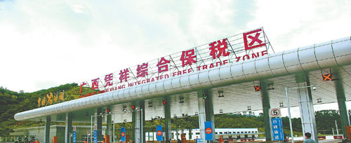 憑祥綜合保稅區位於憑祥邊境經濟合作區南山工業園至友誼關、浦寨、弄懷一帶的狹長地帶,行政隸屬主要在友誼鎮,東至板召屯,南至弄懷,西至浦寨,北至浦扣克山,規劃總用地面積約為8.5平方公里,一期工程已於2011年9月30日封關運營。作為中國首個具有跨境合作背景的綜合保稅區,憑祥綜合保稅區圍繞建設中越跨境經濟合作區規劃,正在開展擴大園區面積、擴充產業內容、擴大輻射範圍和提高經濟總量、產業發展質量、項目落地數量「三擴三提」工作,打造中國-東盟陸路區域國際物流樞紐。據憑祥綜合保稅區管理委員會官員介紹,自封關運營近3年來,憑祥綜合保稅區初步形成「五中心一基地」產業發展格局,即橡膠國際貿易和保稅加工中心、機電產品展銷租賃維修中心、農資保稅倉儲交易中心、大宗農產品保稅加工配送中心、風景苗木進口交易中心、特色資源出口加工基地,并構建至越南海防港、胡志明市和泰國曼谷的3條黃金物流路線。