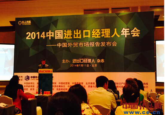 2014进出口经理人年会暨中国外贸市场报告发布会于9月11日在北京举行,图为发布会现场(中国经济网徐晶慧/摄)