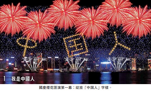 原标题:國慶65周年 港煙花再綻放 「中国人」光耀維港夜空
