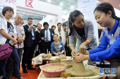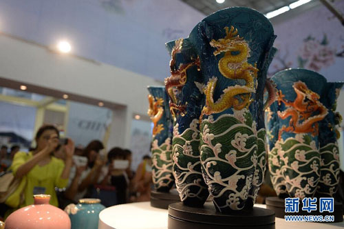 9月18日,第十七届唐山中国陶瓷博览会在河北唐山国际会展中心开幕,国内的242家陶瓷企业和来自韩国、法国、英国、匈牙利等20个国家和地区的27家境外陶瓷企业参展,展出日用瓷、建筑瓷、卫生瓷、艺术瓷等十几个陶瓷品种。本届陶博会将于9月20日闭幕。唐山中国陶瓷博览会始于1998年。经过多年的积累和发展,唐山中国陶瓷博览会已经成为集陶瓷精品展示、陶瓷文化技术交流、艺术鉴赏、陶瓷产品贸易为一体的、在海内外有较大影响的国际陶瓷专业展会。新华社发(郑勇 摄)