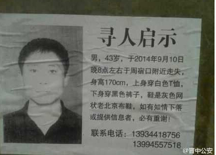 9月10日,山西省晋中市灵石县坛镇乡国土所所长曹方在回县城的路上下车小便,随后失踪。两天后,晋中市公安局在官方微博上发布寻人启事,并引发舆论关注。