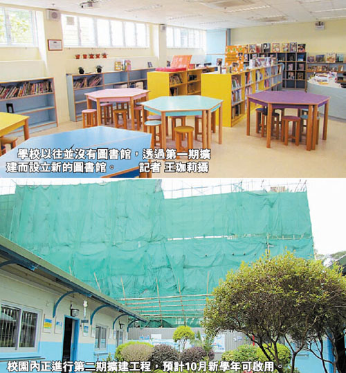 前任校長有見村校設施欠缺,2009年聯同數間村校組成「村校聯盟」,向教育局反映現況。局方年前撥款約2100萬元,予校方作擴建校園及加建硬件設施,包括新增3幢新大樓,其中兩幢各一層的大樓已分別於去年8月及今年6月落成啟用,包括圖書館及3個課室。尚餘一幢3層大樓仍在興建中,包括有6個課室及爭取已久的抽水馬桶,預計可於2014/15學年初完成。