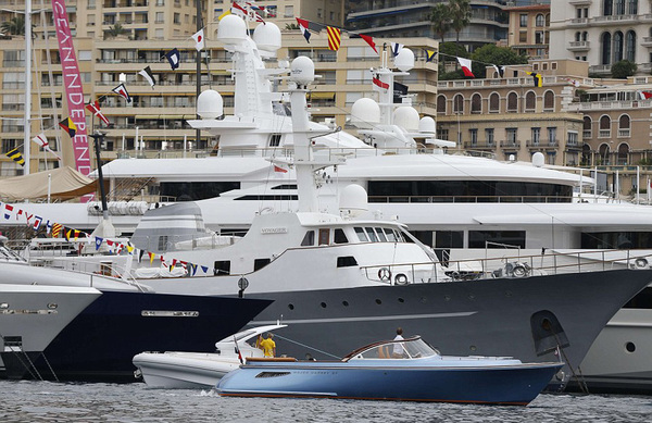 国际在线专稿:据英国《每日邮报》9月24日报道,一年一度的摩纳哥游艇展周三开幕,全世界游艇爱好者与超级富豪齐聚摩纳哥著名的大力神港(Port Hercule),观赏世界上最大、最新以及最豪华的超级游艇。
