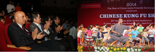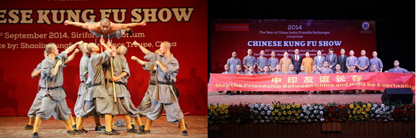 2014年9月23日,由中国驻印度使馆主办,印中经济文化促进会协办的“庆祝中国人民共和国成立65周年”中国武术演出在印度首都新德里斯里堡剧场举办,来自中国著名古刹、素有“禅宗祖廷”之称的嵩山少林寺的武僧团为印度观众献上了一台精彩的中国功夫表演。中国驻印度大使乐玉成、印度旅游部副部长德万、各国驻印使节以及各界友好人士近2000人应邀观看演出。