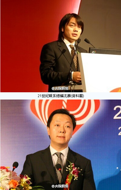 25日新华社发布消息称,21世纪报系总编沈颢、总经理陈东阳当天下午被警方带走。 有消息称二人党内职务已经被免。二十一世纪传媒位于北京和上海的两个办公室也同时被搜查,据信此事与早先该公司旗下21世纪网涉嫌新闻敲诈有关。
