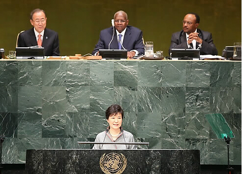 24日,韩国总统朴槿惠出席联合国大会并发表主旨演讲。(韩联社)