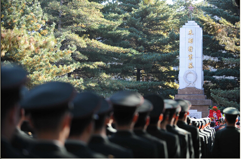 解放军和武警官兵在哈尔滨烈士陵园参加公祭烈士活动